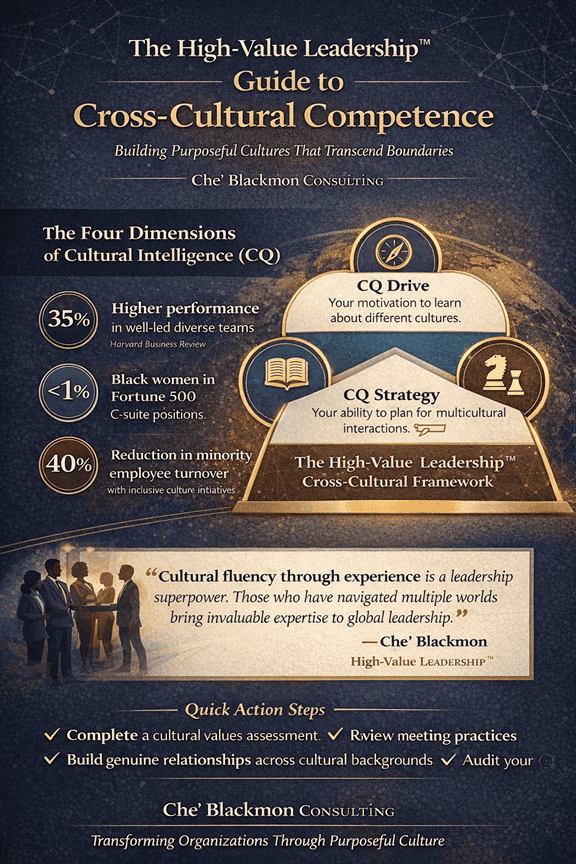 Ready to transform your organization’s culture and develop cross-cultural leadership capabilities? Che’ Blackmon Consulting offers fractional HR leadership, culture transformation consulting, and executive coaching designed to create workplaces where every person can contribute their best work.